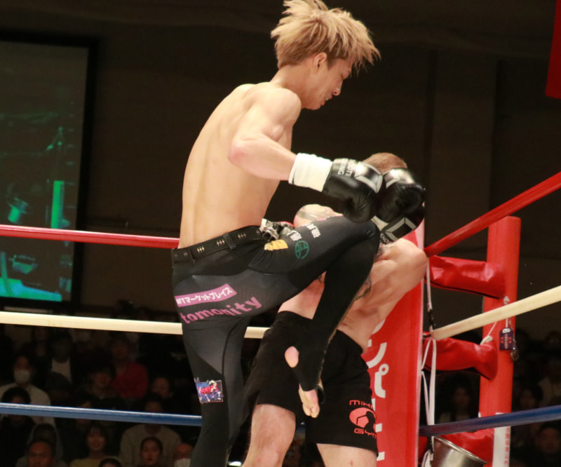 前戦11月、笠原は飛び二段蹴りでTKO勝利