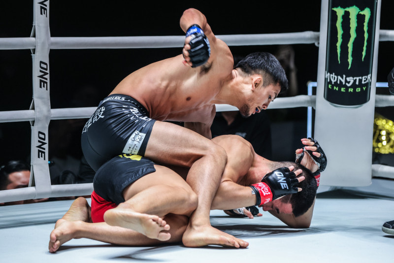 若松が鬼気迫る表情でパウンド!(23年7月のシェ・ウェイ戦)©︎ONE