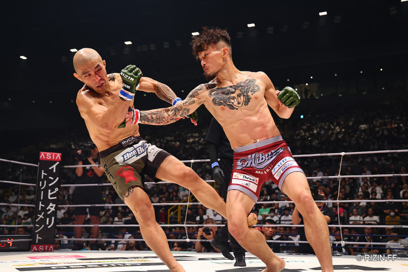 福田(右)が山本アーセン(左)の顔面をボコボコにー =昨年9月
