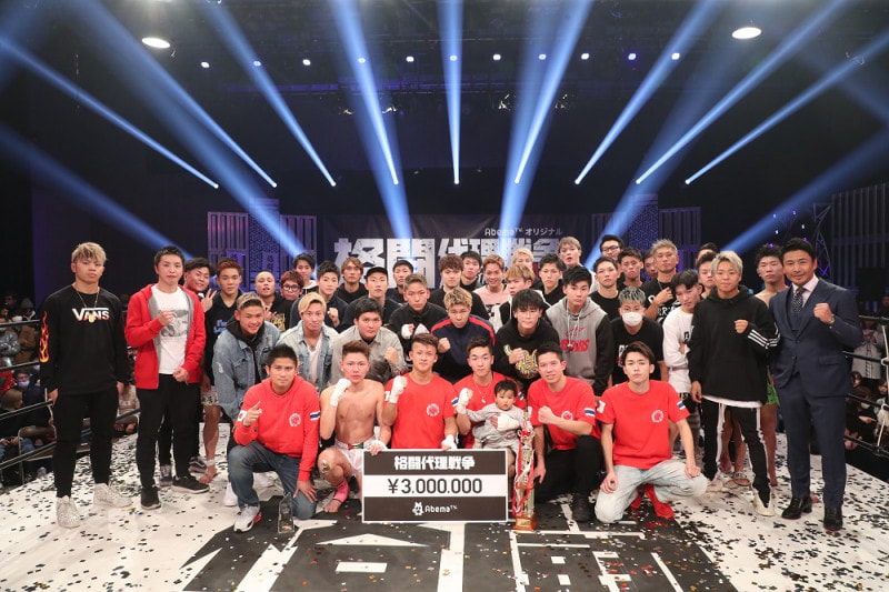 格闘代理戦争が3年ぶりに開催決定、写真は20年1月のもの。魔裟斗や武尊の顔が見える。(C)AbemaTV