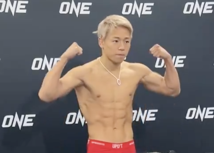 計量パスし力強いマッスルポーズの武尊@ONEChampionshipより