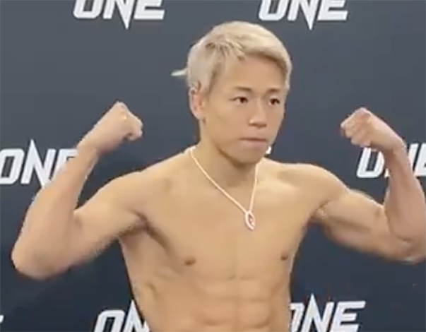計量パスし力強いマッスルポーズの武尊@ONEChampionshipより