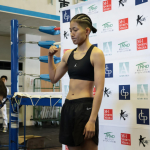計量パスで片手マッスルポーズを決めた