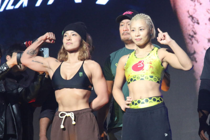 平田樹(左)と三浦彩佳(右)は同体重の51.48kgでパス