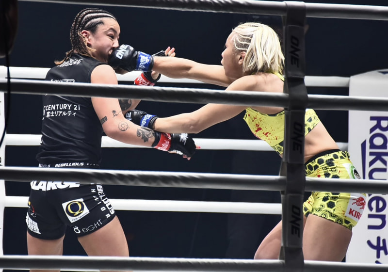 三浦のパンチに平田の顔が歪む