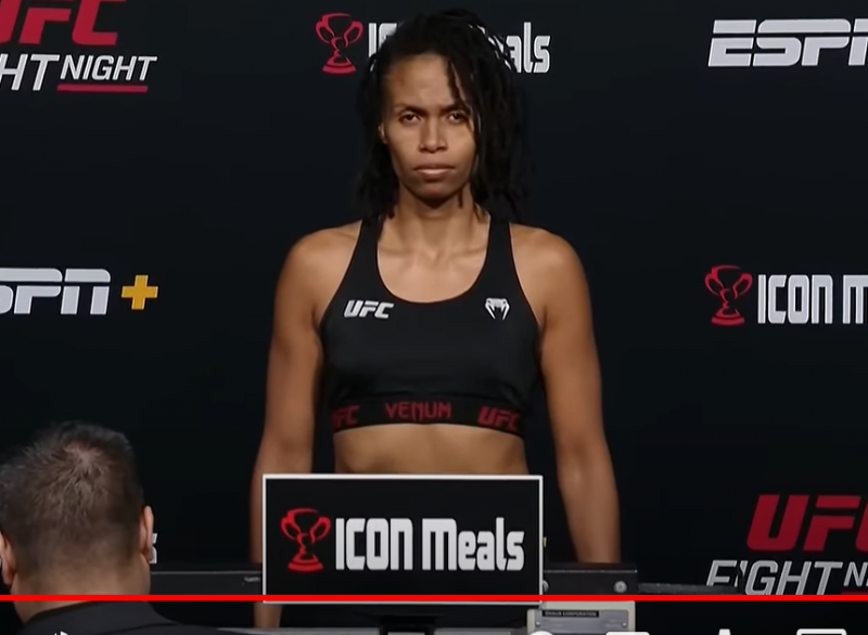 大幅計量失表情が険しいカロリーナ(UFC公式YouTubeより)