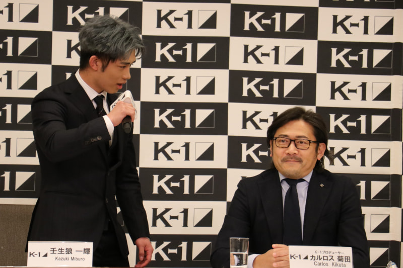 カルロス菊田プロデューサーに「ワシのことは知っとったか?」と尋ねる壬生狼(左)