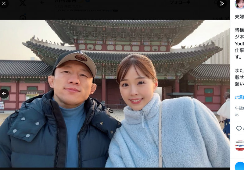 ソウルにある勤政殿を訪れた2人(@kawamuranatsukiより)