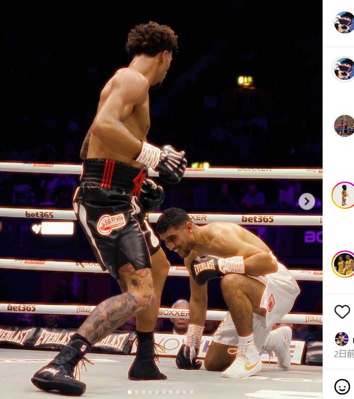 ボディでダウンを奪ったウィテカー @benwhittaker