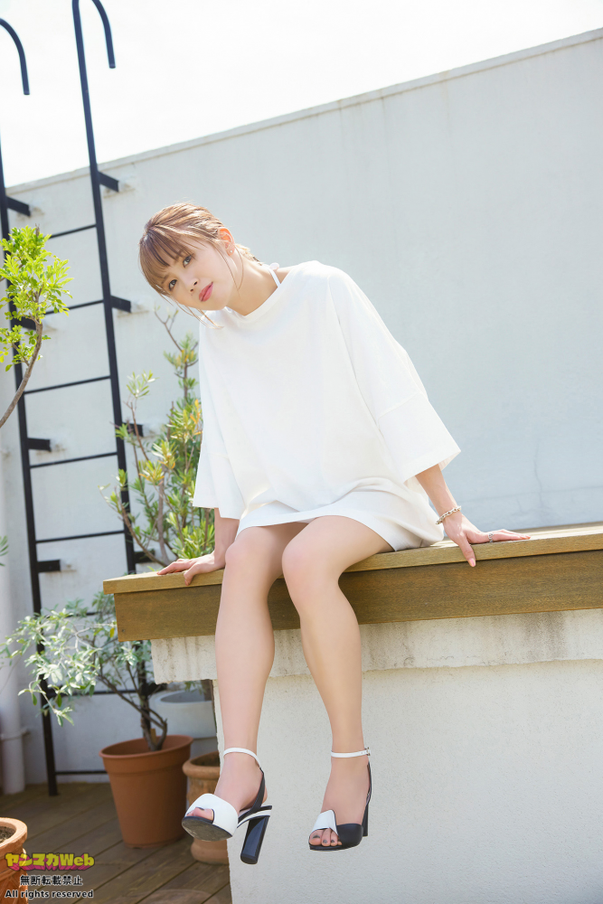 美脚が際立つ白ワンピース姿(C)桑島智輝/ヤンマガWeb