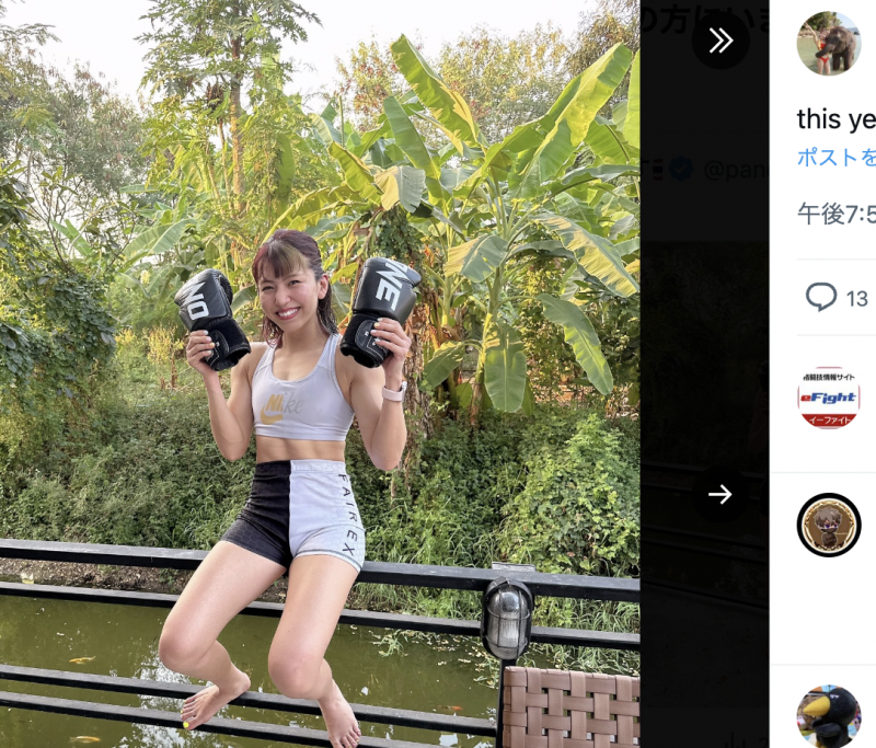 タイで修行中のぱんちゃんが割れた腹筋!(ぱんちゃんのXより)