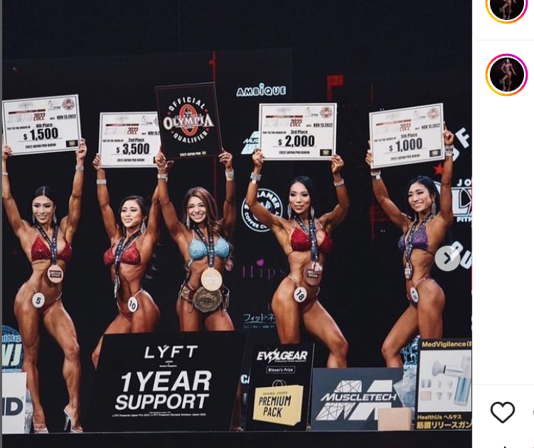 JAPAN PRO 2022で5位入賞の鈴木(右端、@kana___ifbbpro)