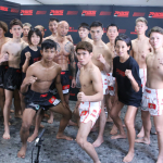 メインカードの前に出場する老沼隆斗(最前列右)らも計量パス
