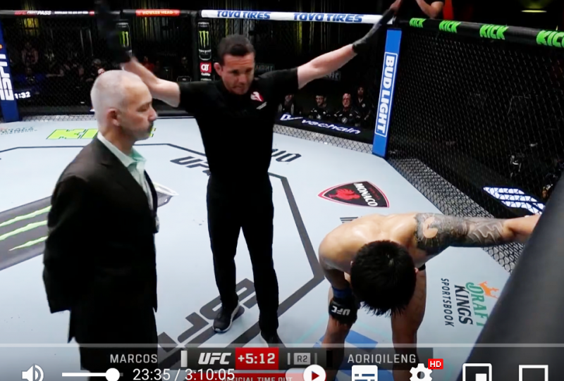 既定の5分間を越えても回復しないため、ノーコンテストに(@UFC JAPAN)