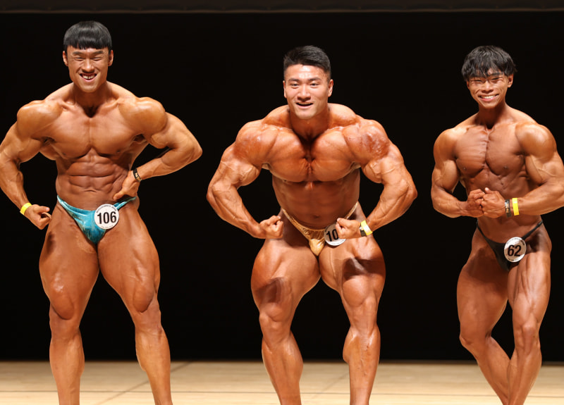 優勝した中国の毛のド迫力ボディ!左は韓国のパク、右は日本の吉田星
