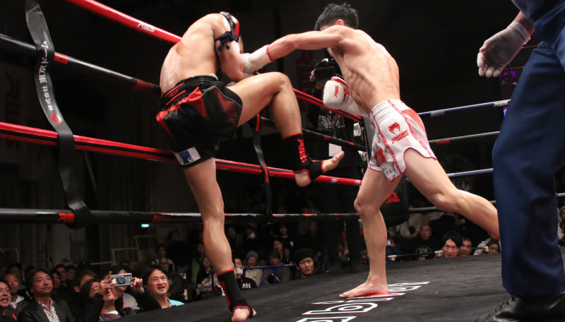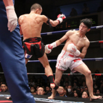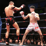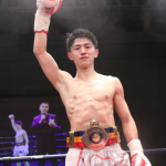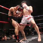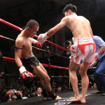 吉成はボディを効かせて、左ストレートでダメージを与える