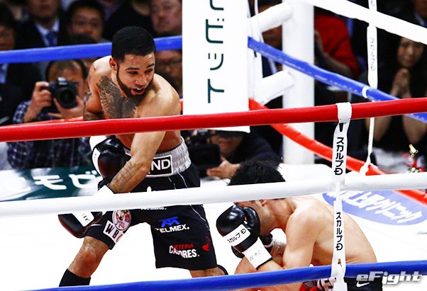 18年3月、体重超過の上、山中慎介をKOした瞬間。その後、追放処分に