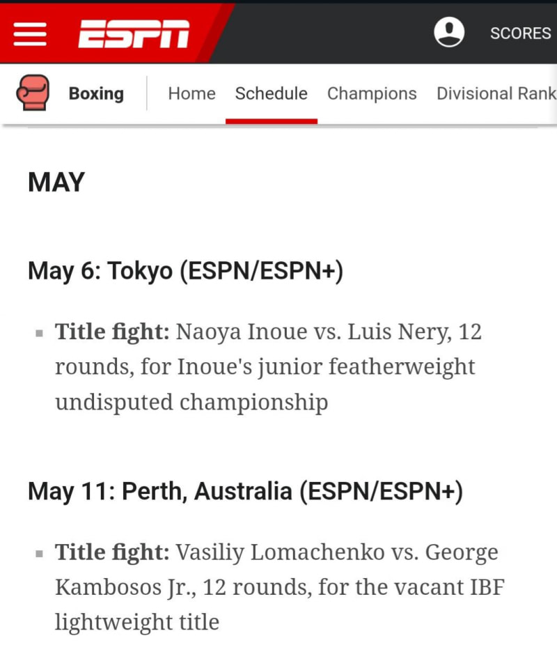 ESPNが公開した5月のスケジュール表に井上vsネリが(www.espn.com/boxingより)