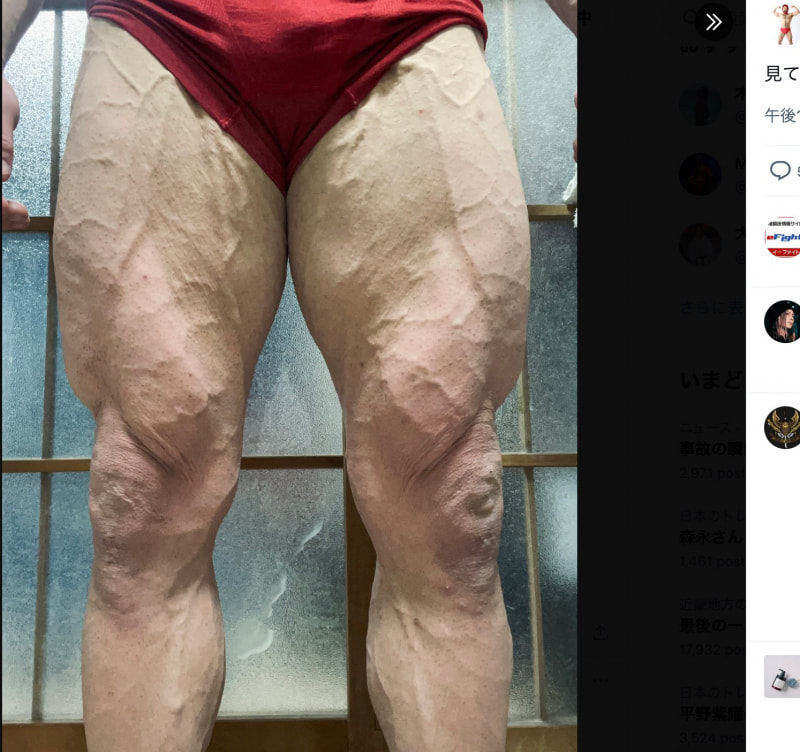 血管の浮き上がった驚異の脚!バンタム級へ減量の成果か(@wrestler1106 より)