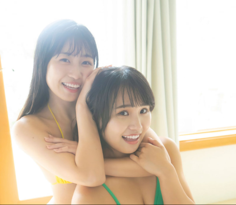 渡辺未詩(右)が鈴木志乃(左)にプロレス技をかけられる!?(C)西村康/ヤンマガWeb