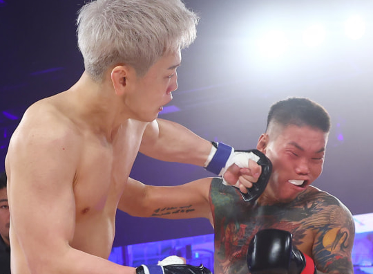 (昨年11月の山口裕人戦)西谷の強烈パンチで山口の顔が歪む!©︎RISE CREATION