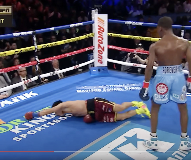 前のめりに失神する相手(TOPRANK YOUTUBEより)