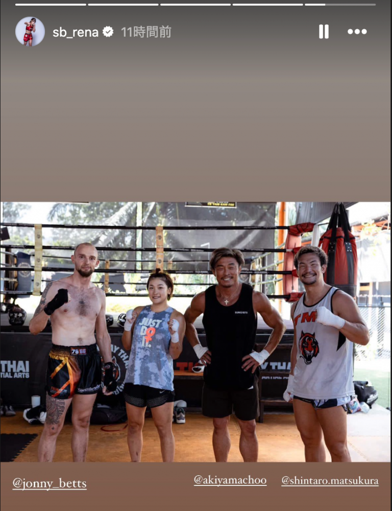 合宿に訪れた秋山成勲とK-1ミドル級王者・松倉信太郎と一緒に@sb_renaより
