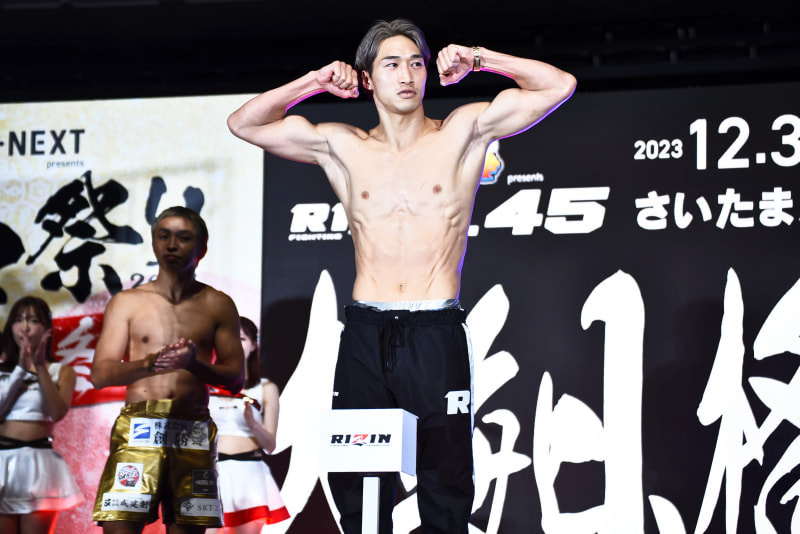 (昨年大みそか)久保戦の計量で見せたマッスルポーズ!