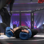 担架で運ばれる咲人にレオは中指を立て挑発(朝倉未来YouTubeより)