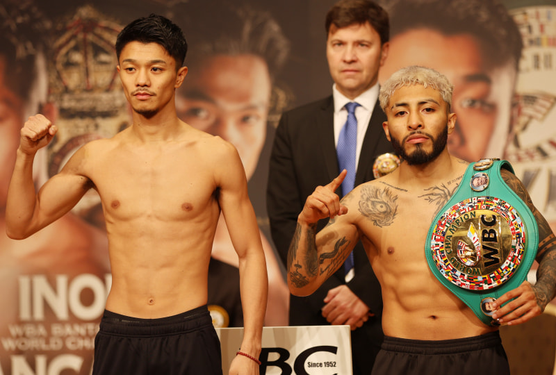 元2階級王者中谷とWBCバンタム級王者サンティアゴが計量パスし並ぶ