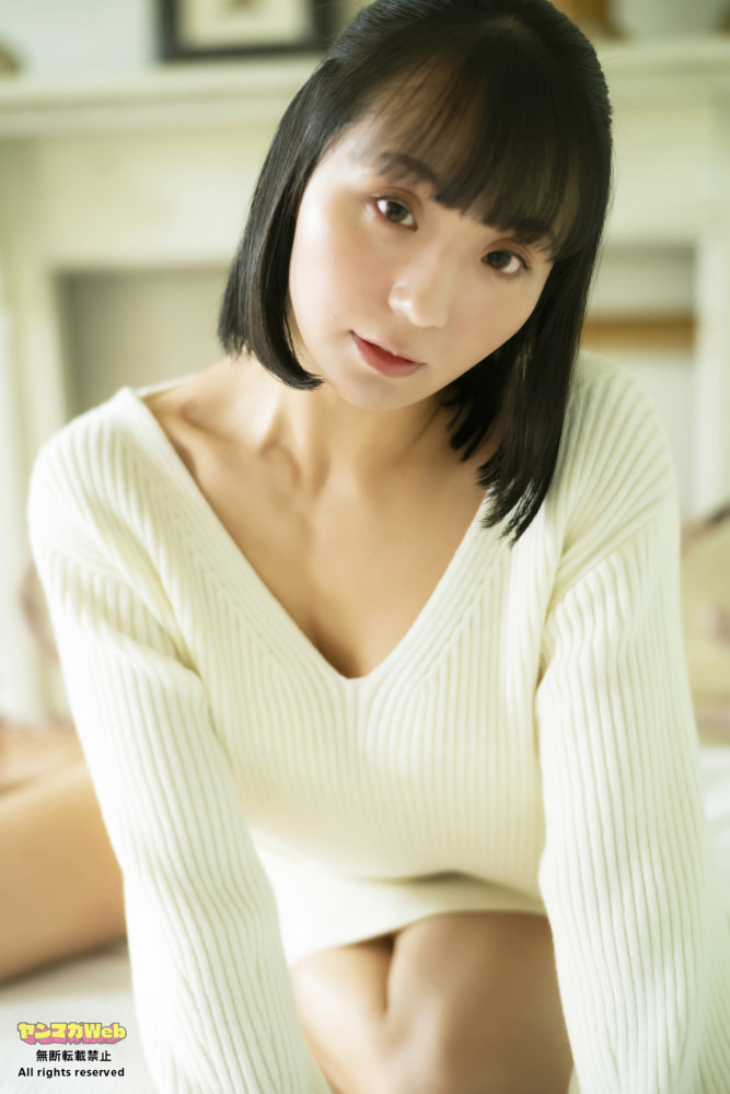 夏葵、前回の白ニット姿(C)西村康/ヤンマガWeb ▶︎ヤンマガページへ