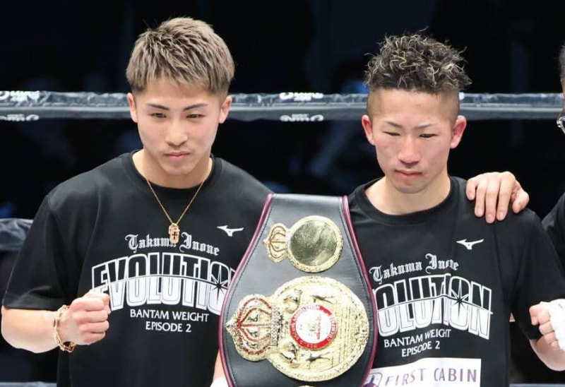 拓真(右)がKOで初Vし、兄・尚弥と喜ぶ