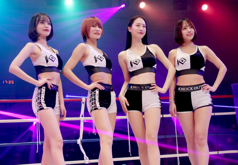 KNOCK OUTガールズの4人、左からチュアン梨砂子、弓川いち華、来栖うさこ、徳勢菜那