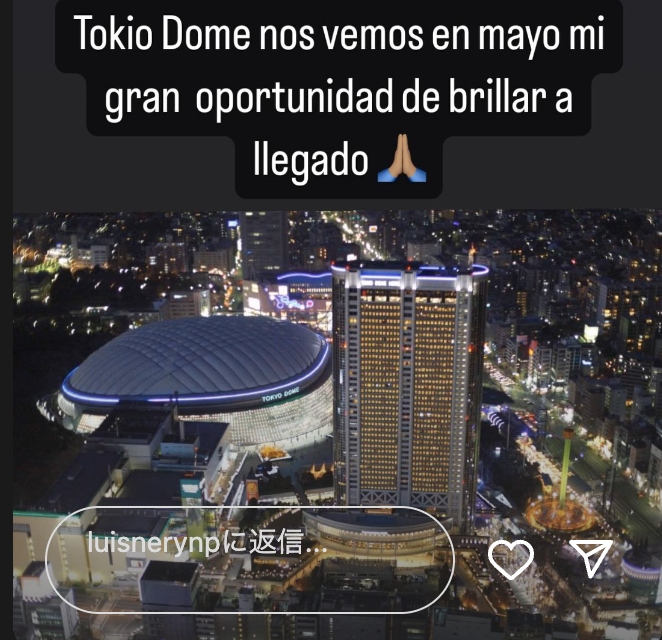 ネリが「東京ドームで会おう、輝けるときがきた」と投稿(本人のインスタより)