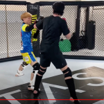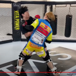 左のパンチをヒットさせる!(朝倉未来YouTubeより)