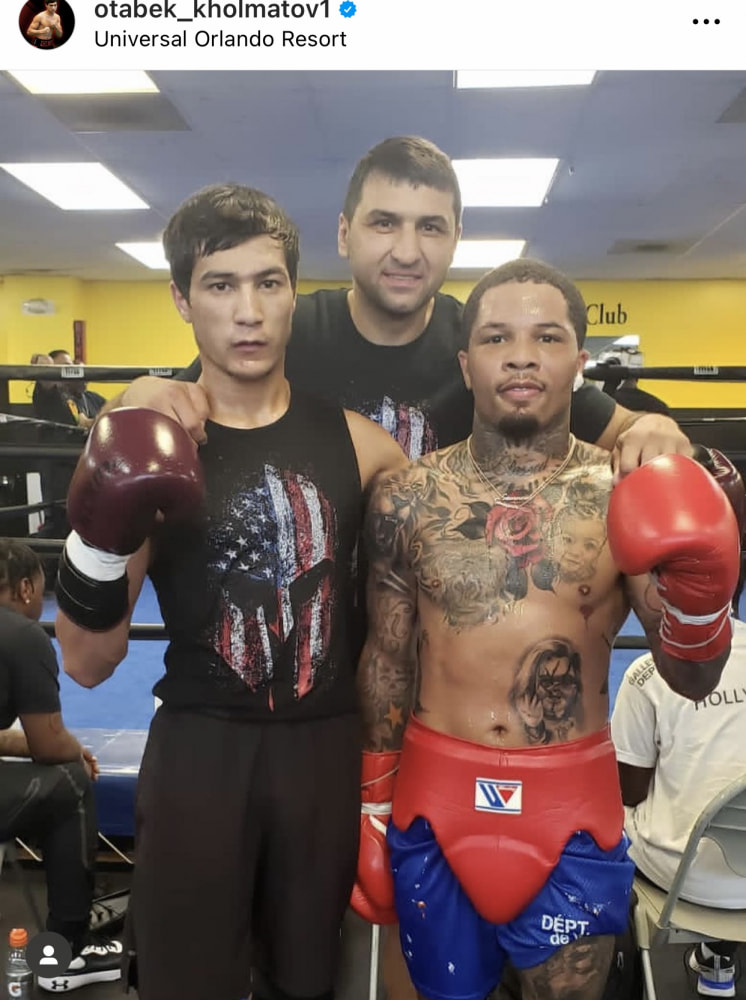 デービス(右)のスパーリングパートナーでもあるホルマトフ @otabek_kholmatov1