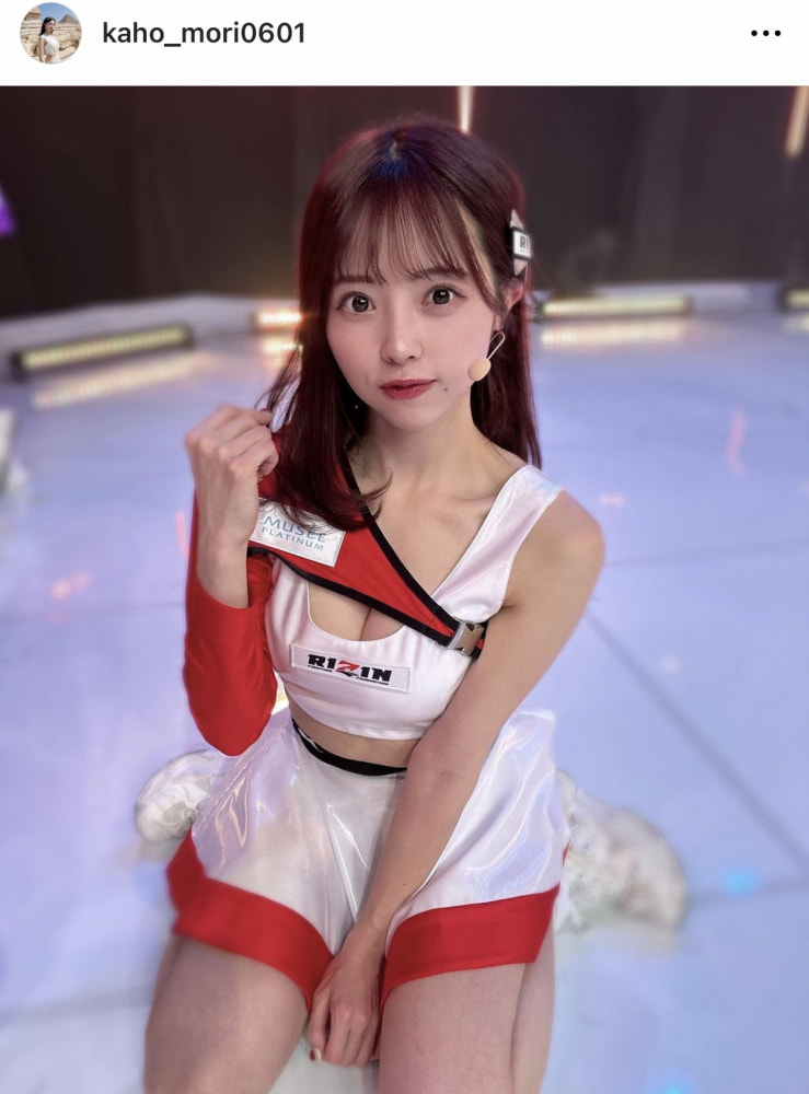 RIZINガール衣装でガッツポーズ@kaho_mori0601