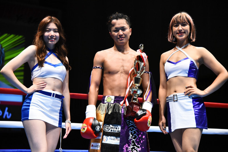 昨年キックのラウンドガールの波田さん(左)