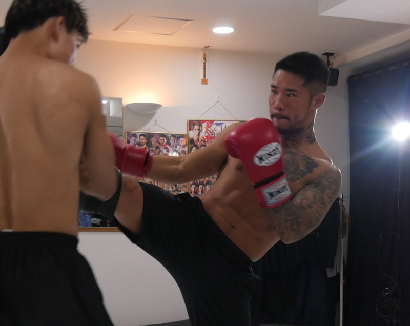 キックの練習をする中村