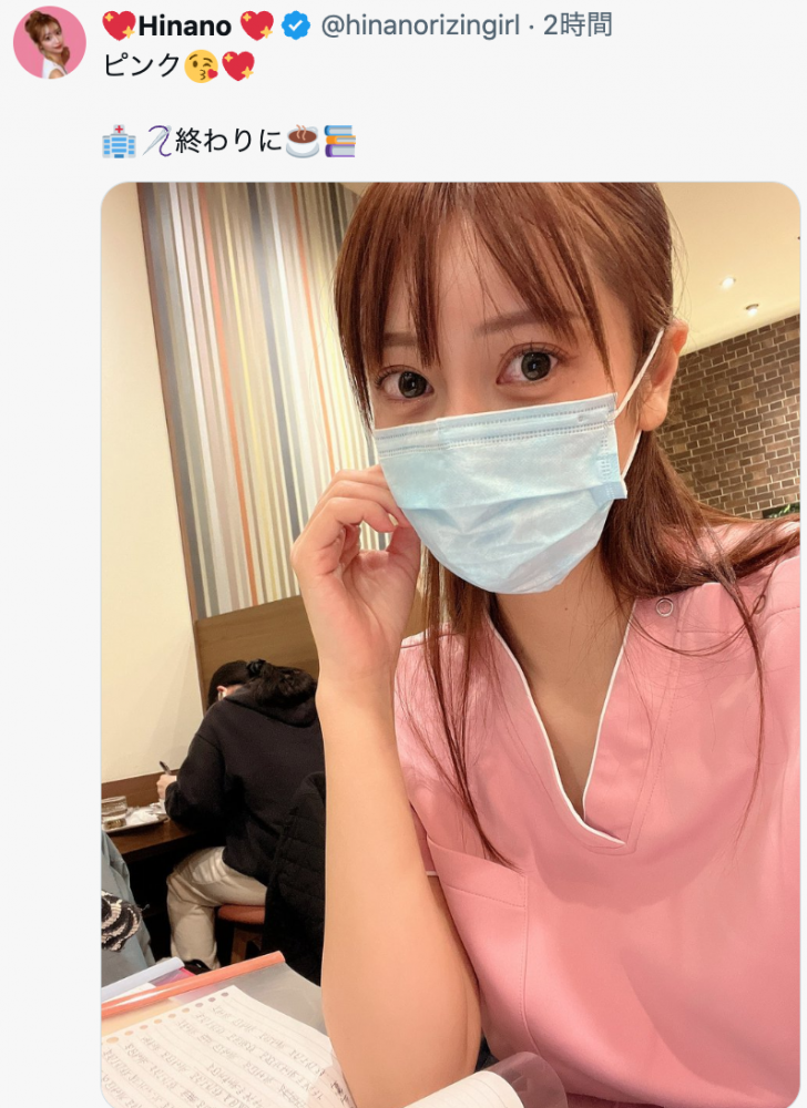 鍼灸を学ぶ、ピンクの医療着姿のHinano@hinanorizingirlより