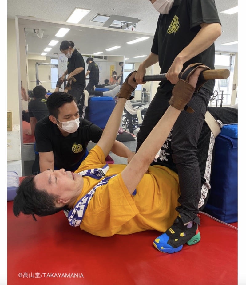 高山がリハビリで腹筋トレーニング(高山善廣のブログより)