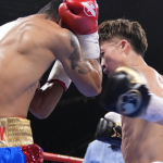井上が開いた隙に左ボディ!(C)Naoki Fukuda
