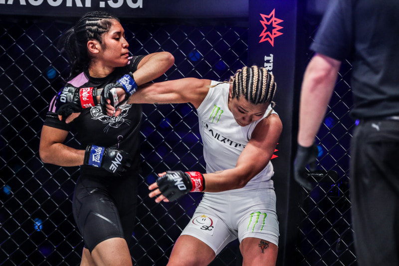 ラズワンが平田樹(右)に打撃を放つ=22年