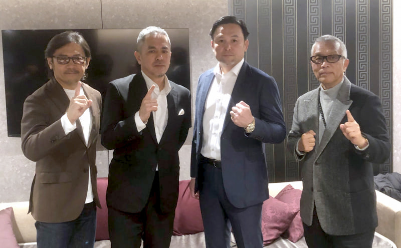 K-1とRISEが記者懇親会を開催。左からK-1のカルロス菊田プロデューサー、Krushの宮田充プロデューサー、RISEの伊藤隆代表、石井館長