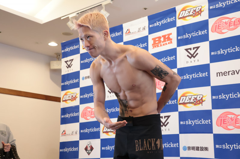 計量パスでお辞儀のポーズ、割れた腹筋を見せた