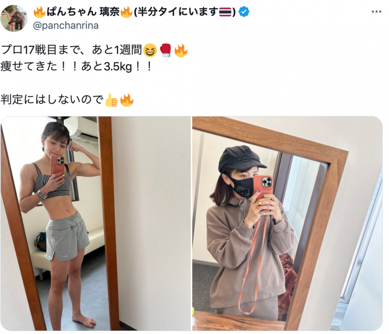 ぱんちゃん、K-1初参戦の追い込み時、絞れた減量ボディを公開!@panchanrinaより