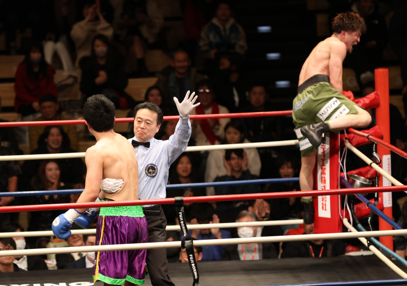 相手が打たれ続け、レフェリーがストップ!
