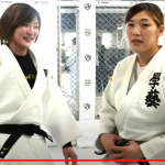 伊澤に巴投げを決める角田(『角田夏実の部屋』)