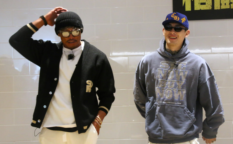 計量後、9名の監督が会見に出席。秋山(左)と平本(右)がジョークを交えながらコメントした