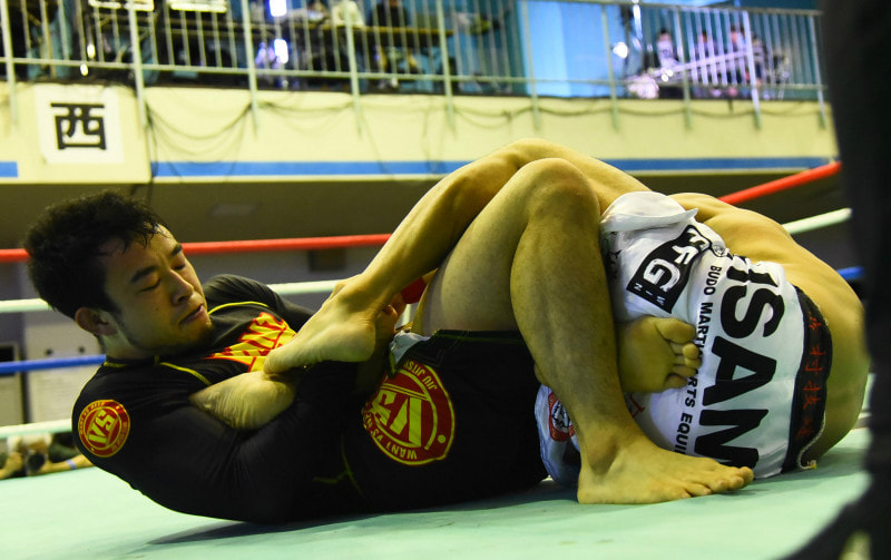 ヒールホールドを狙う寒河江(写真は20年8月、清水俊一戦)